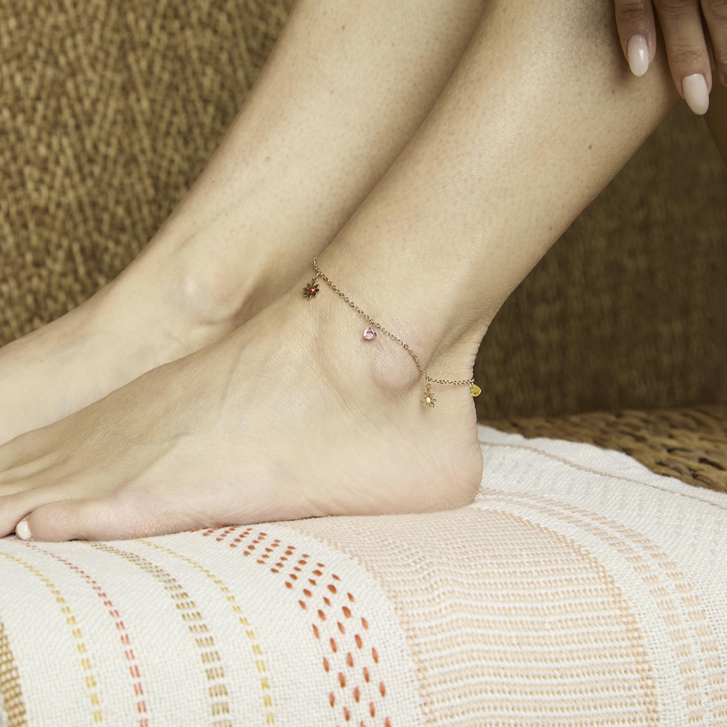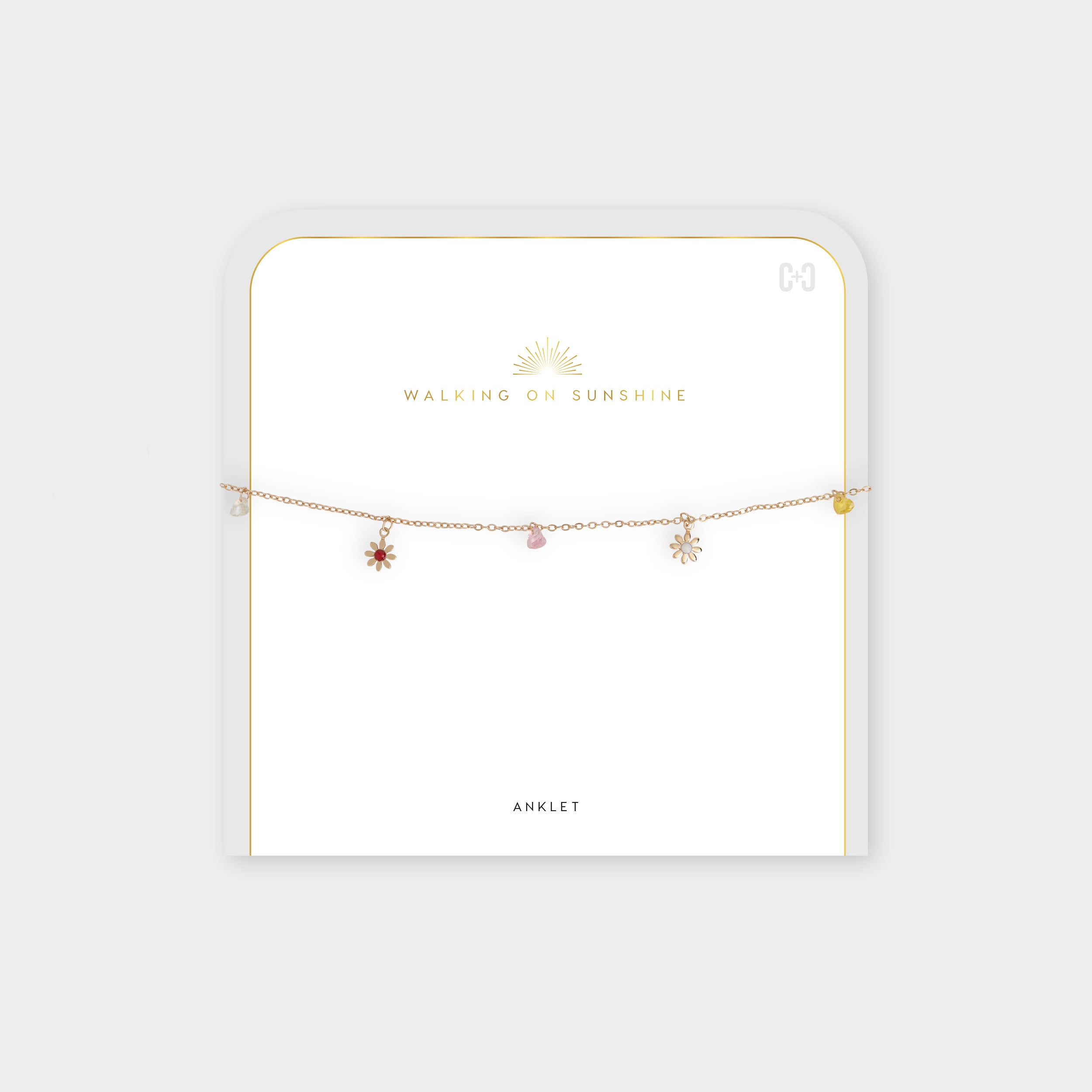 Add a touch of sunshine to your look with this stunning anklet. The delicate design and shimmering finish make it the perfect accessory for beach days, music festivals, or simply running errands. Treat yourself to a little piece of sunshine today!