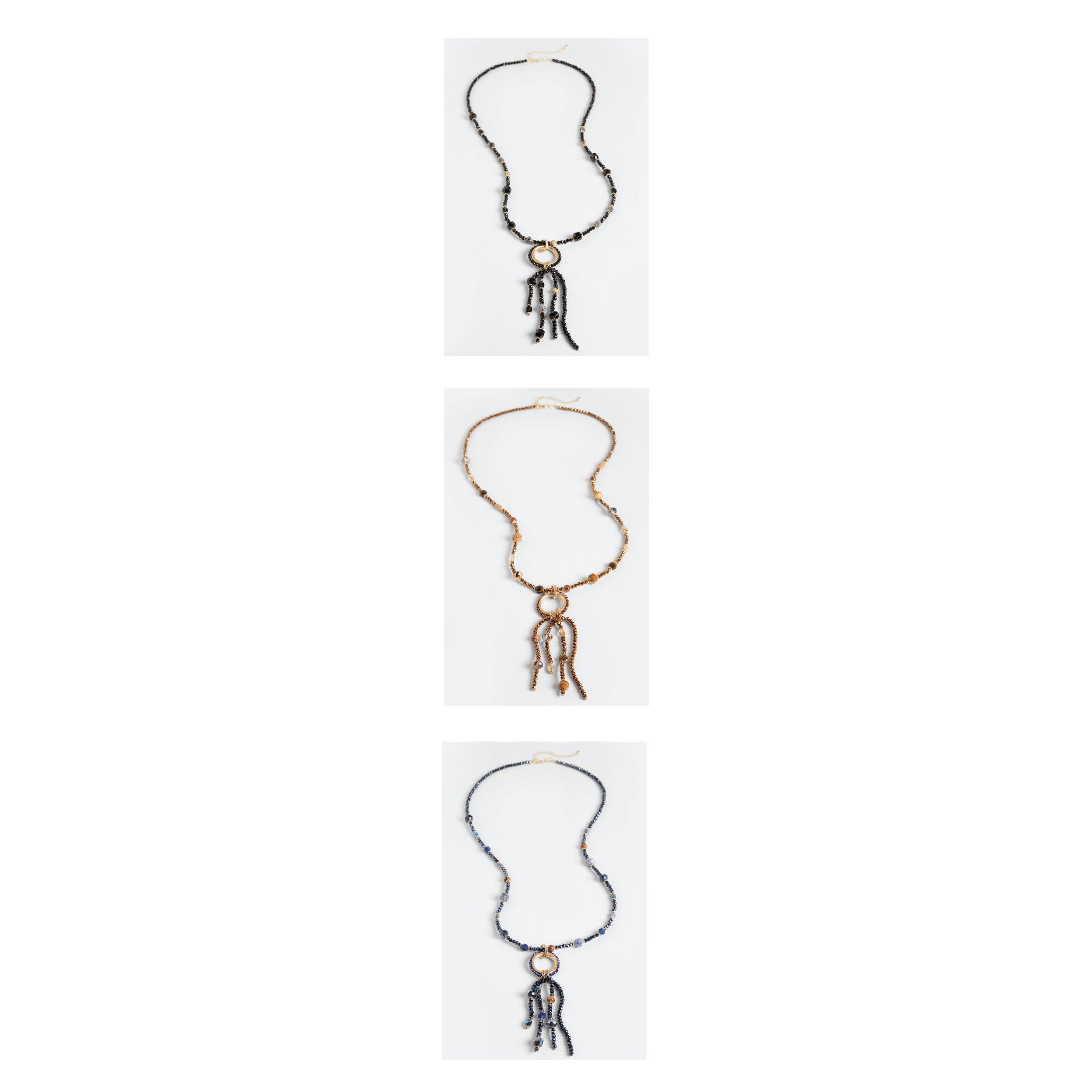 A total of 6 pieces (2 each of 3 styles). The Libby Necklace is the perfect accessory for adding that boho chic touch to any outfit. This versatile piece can be worn alone for a dainty look or layered with other necklaces for a more dramatic effect.
