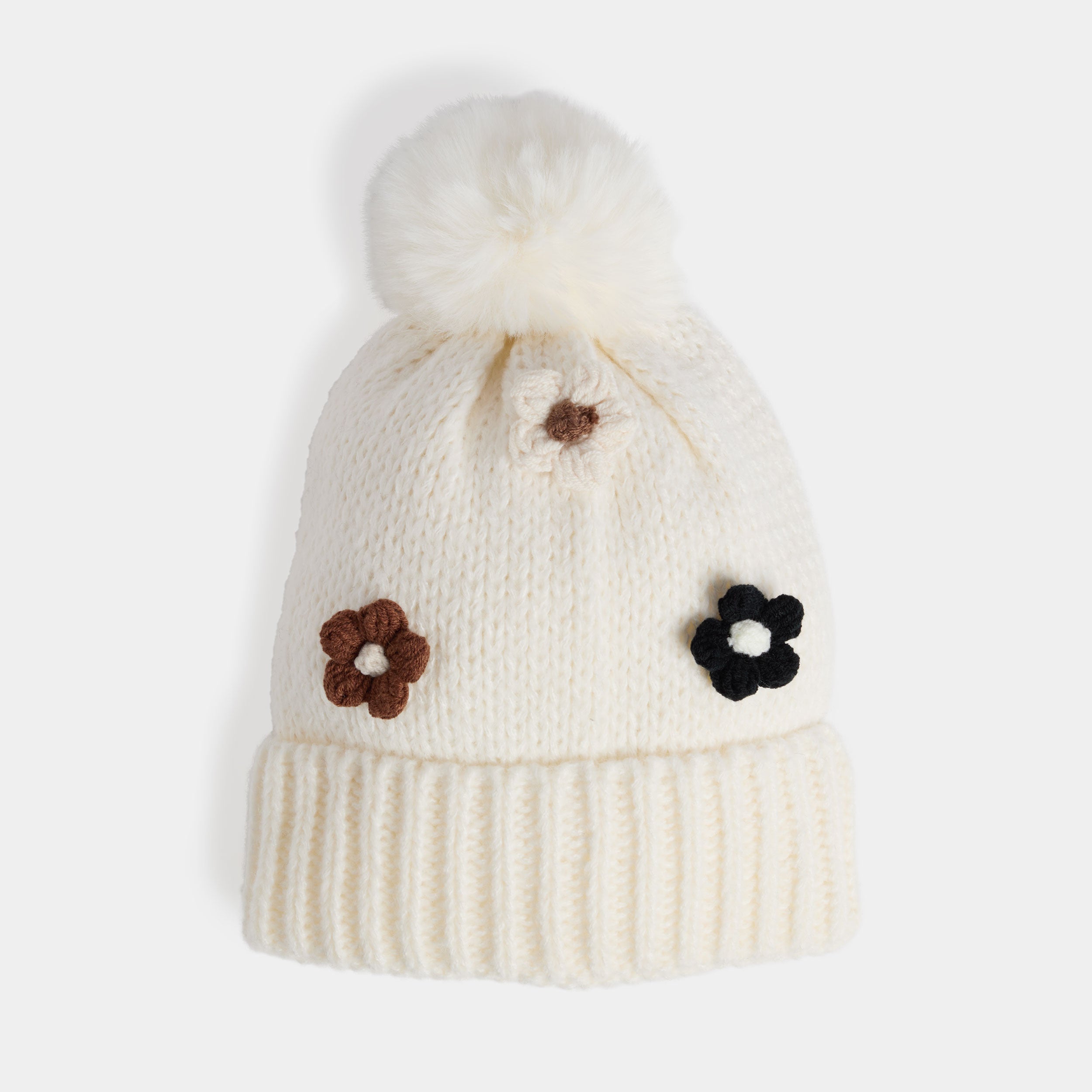 Flower Embellished Knit Hat