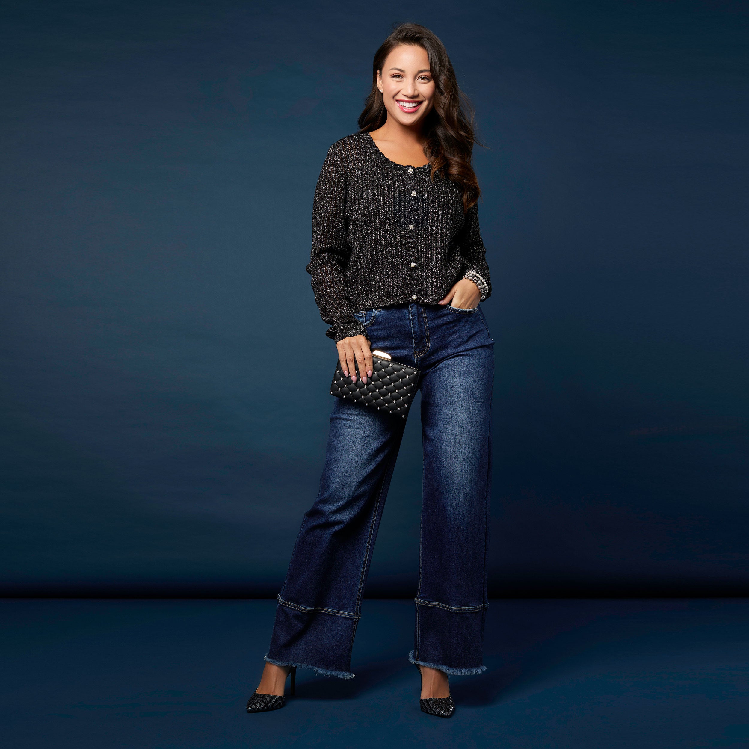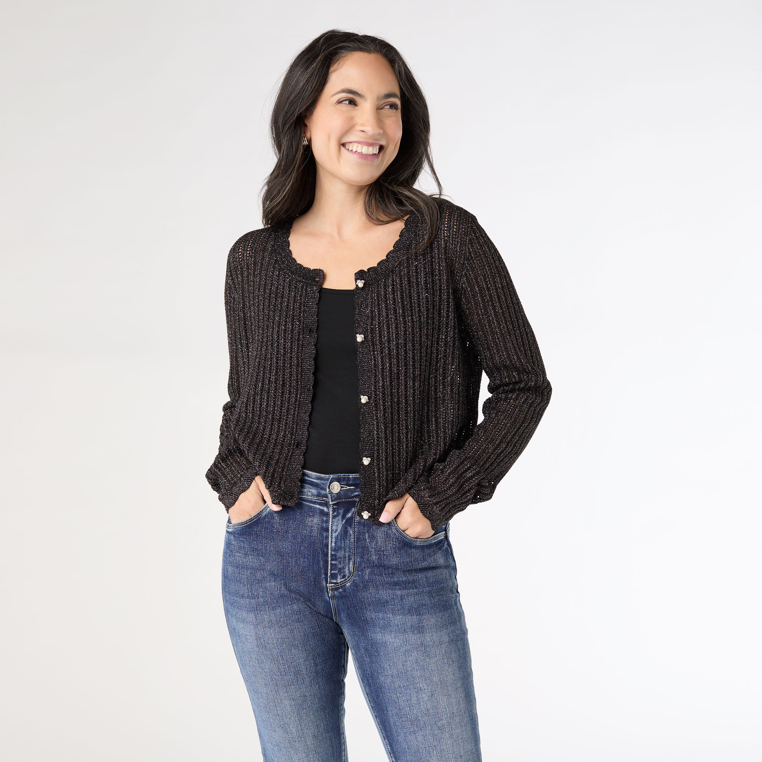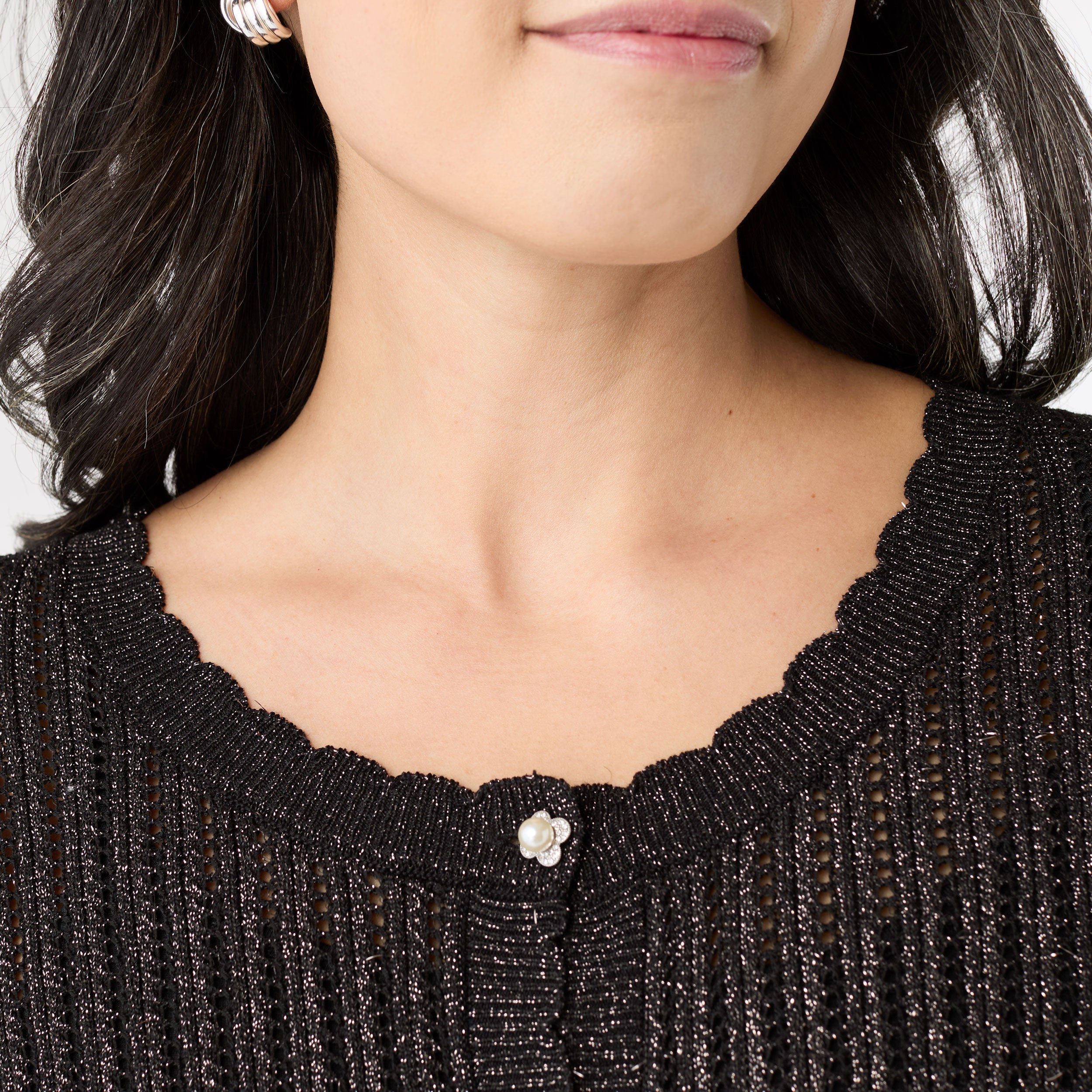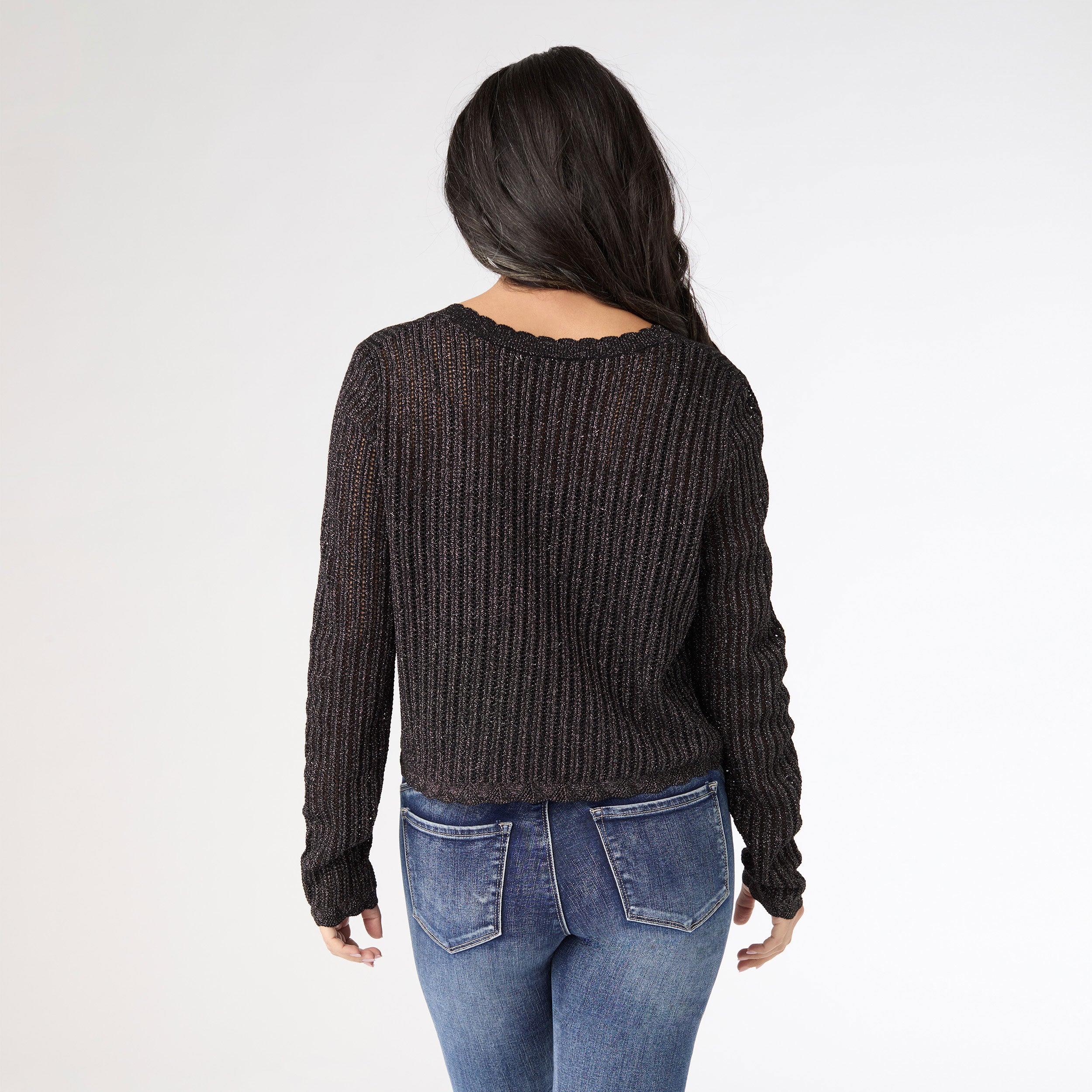 Wrap yourself in luxury with the Jodilyn Open Knit Cardigan with Lurex. Perfect for those chilly winter days when you want to feel cozy and chic. Stay on-trend this season with this must-have fashion accessory.
