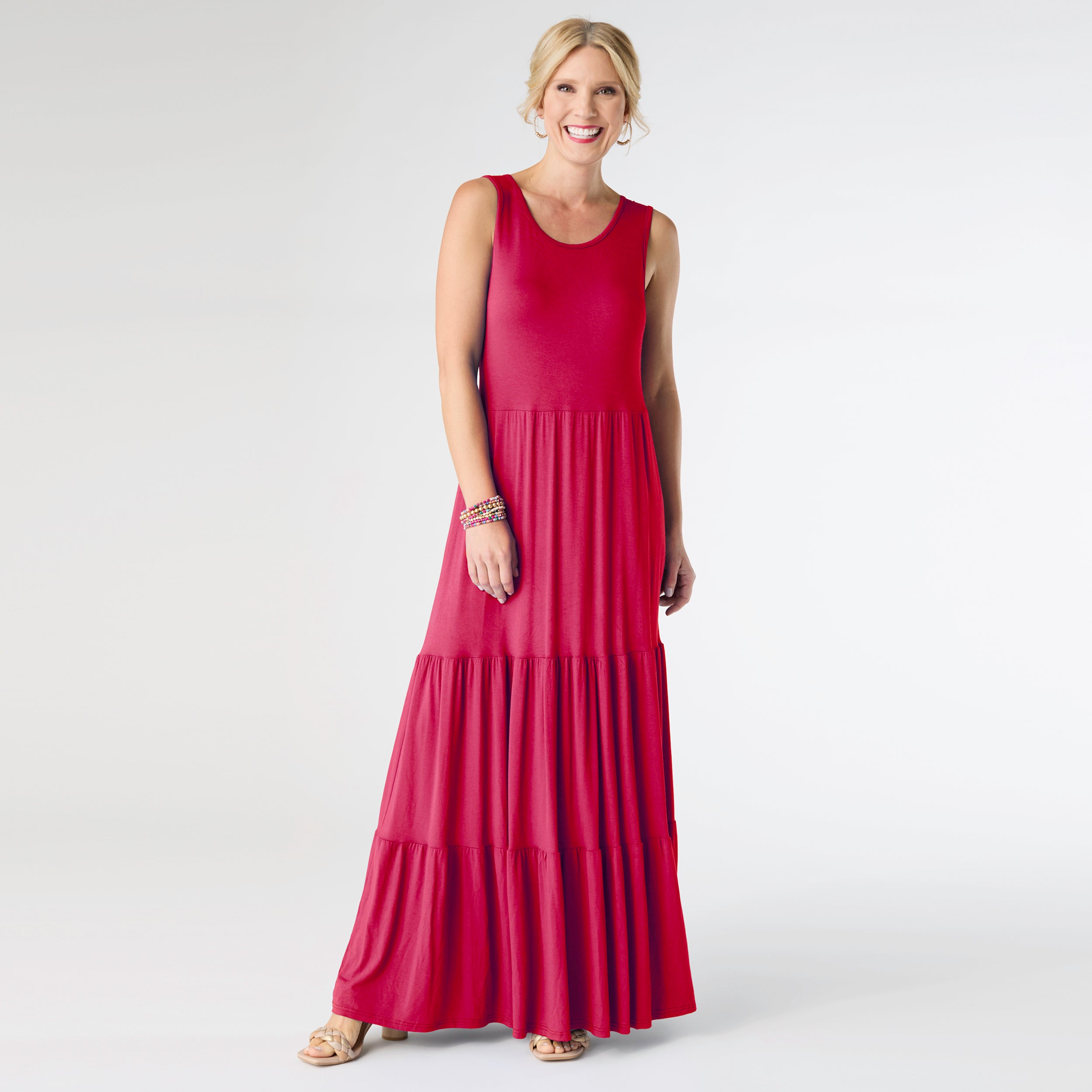 Elevate your style with our Janie Solid Tiered Maxi Dress, a chic and comfortable sleeveless piece that you'll reach for time and time again. Whether you're running errands or enjoying a day out with friends, this dress is the perfect essential for any occasion.