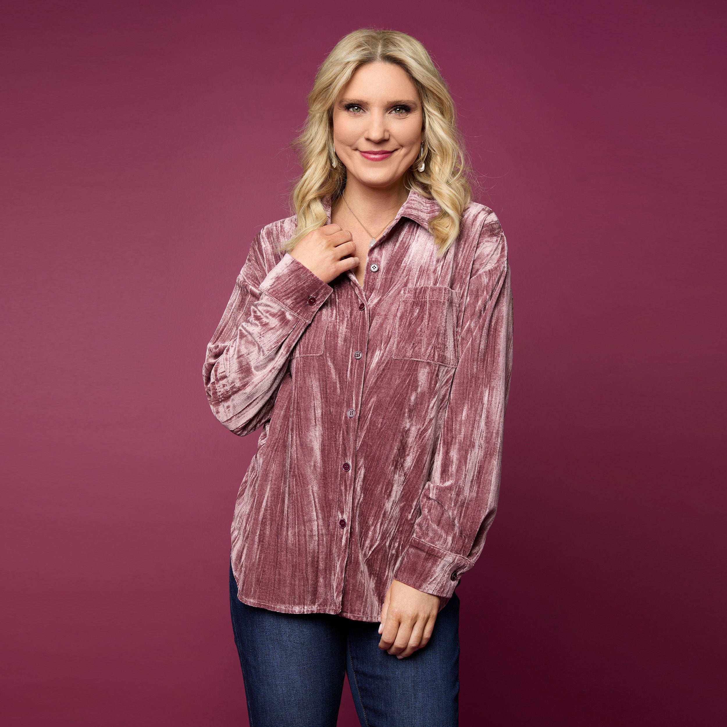 Get ready to slay in the fashion game with our Avyanna Crinkle Velour Button Front Top. Perfect for those cool fall days when you want to look effortlessly stylish.