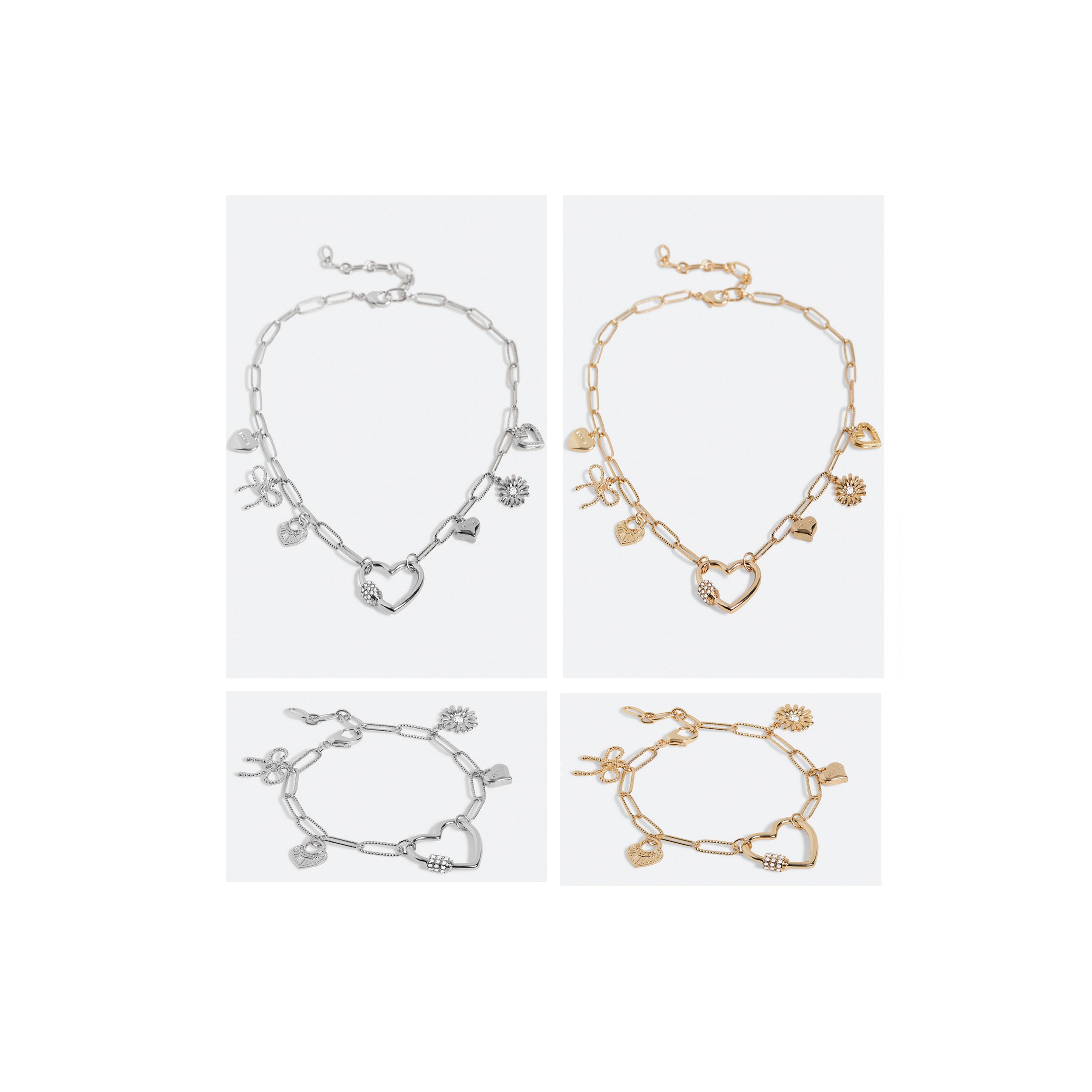 A total of 8 pieces (4 styles, 2 of each). Add some love to your look with our Lovella Bracelet and Necklace! This stunning chain-link bracelet features a delicate heart pendant that is perfect for Valentine's Day, or any day you want to show a little extra love.