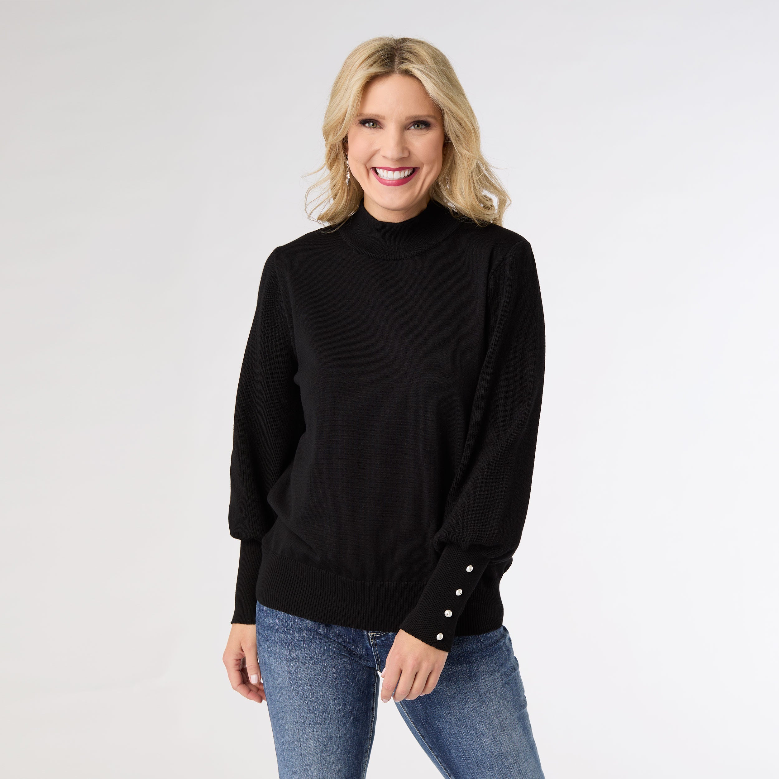 Stay stylish and cozy this winter with our Skylah Mock Neck Sweater with Pearl Button Cuff. Made for fashion-forward individuals who love staying warm during the colder months, this sweater is the perfect addition to your fall wardrobe.