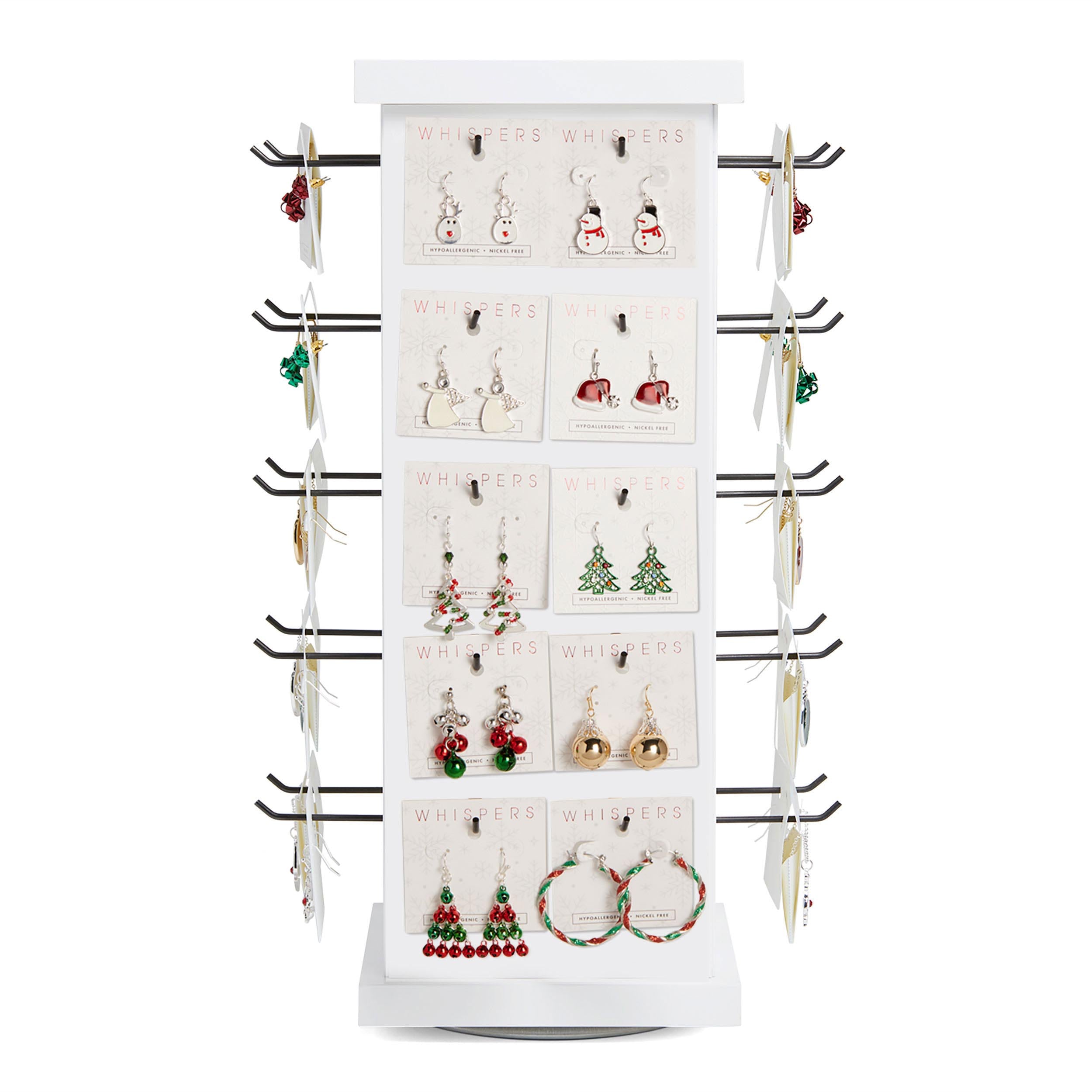 A total of 80 pieces (40 variety earring styles, 2 pairs of each), and 4-sided spinner display. Free 10 pairs of earrings. Free 50 organza bags.
