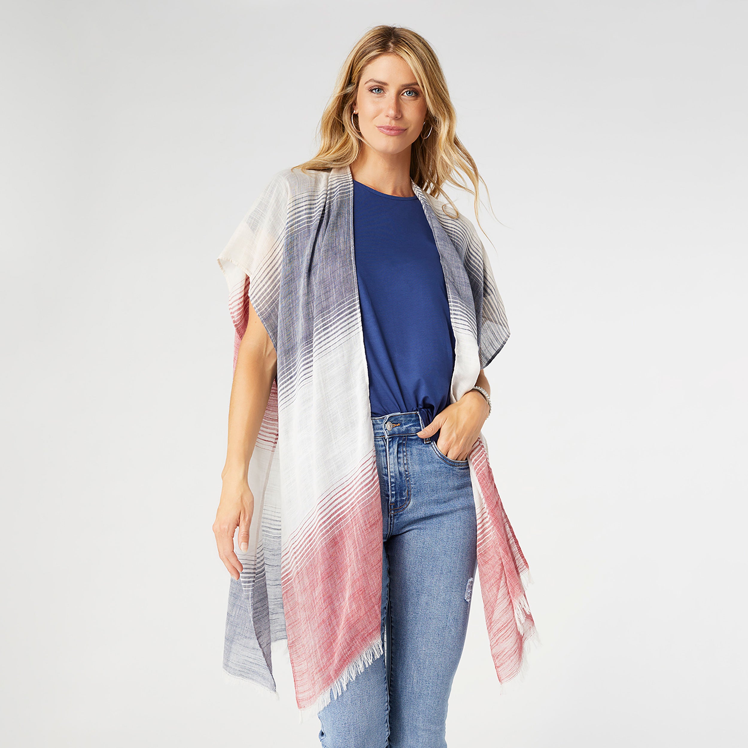 Upgrade your wardrobe with our Vintage Striped Ruana! This stylish topper is perfect for layering, giving your outfit a touch of timeless elegance. Made with lightweight materials, it's comfortable to wear all day long. With its classic stripes and versatile design, it's a must-have accessory for any fashion lover.