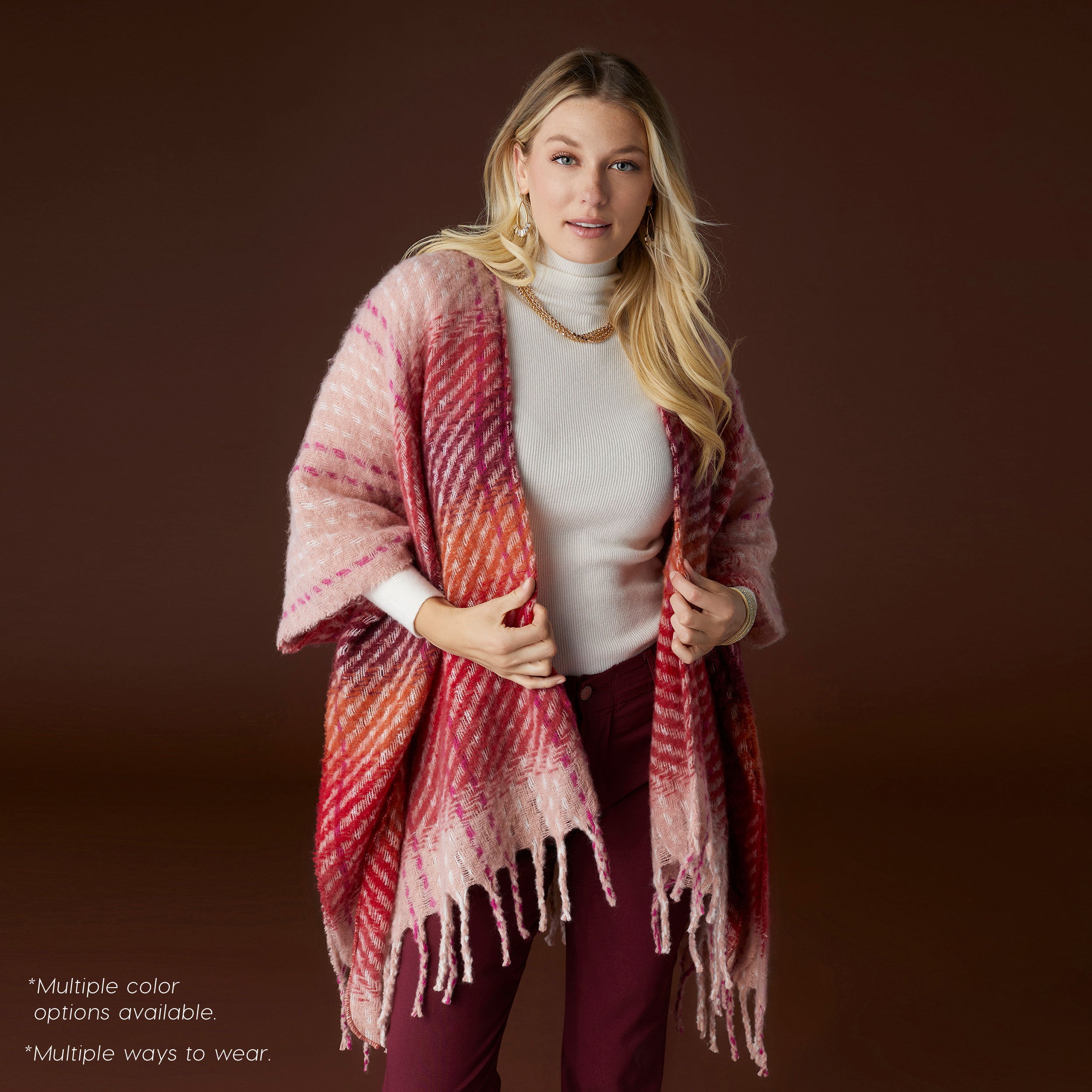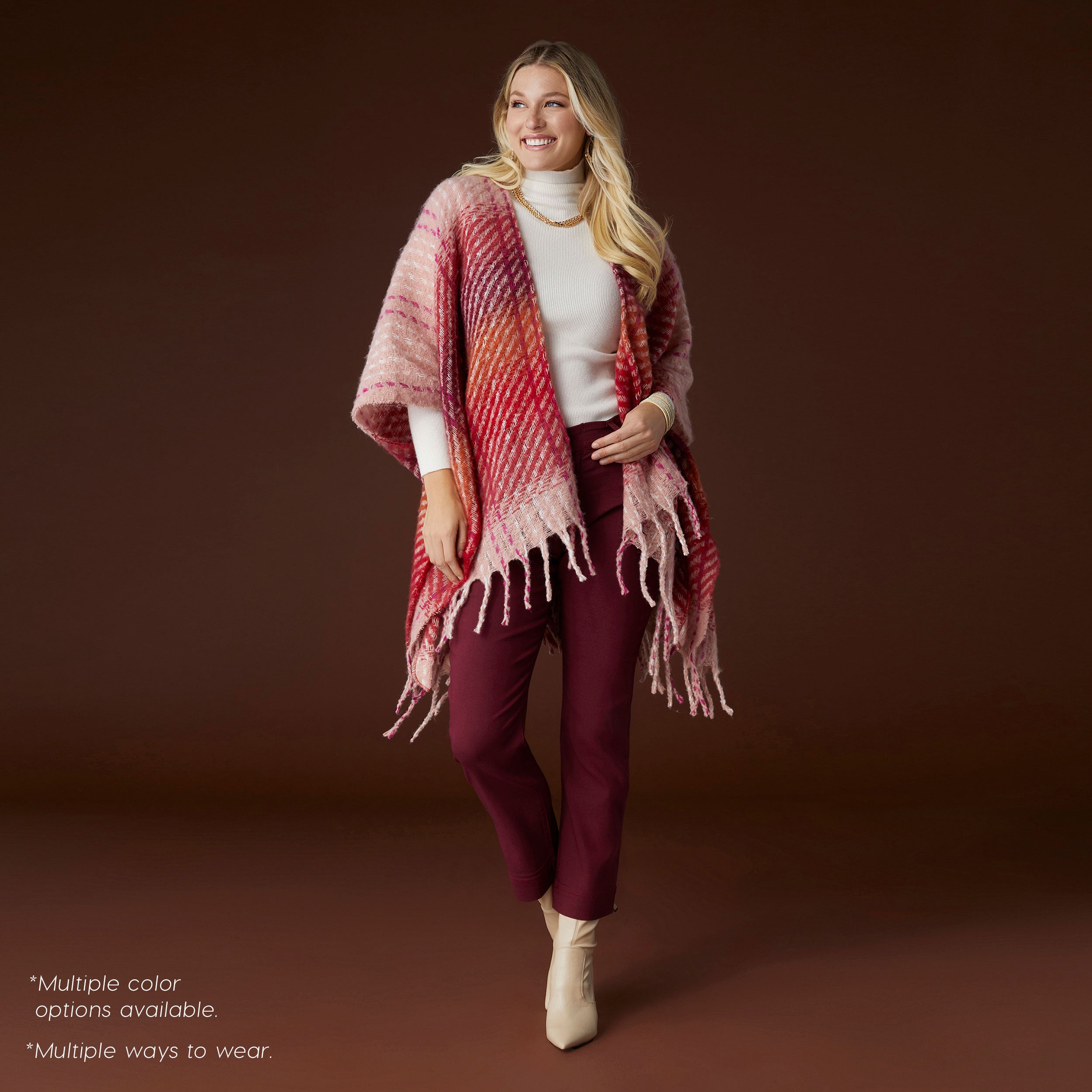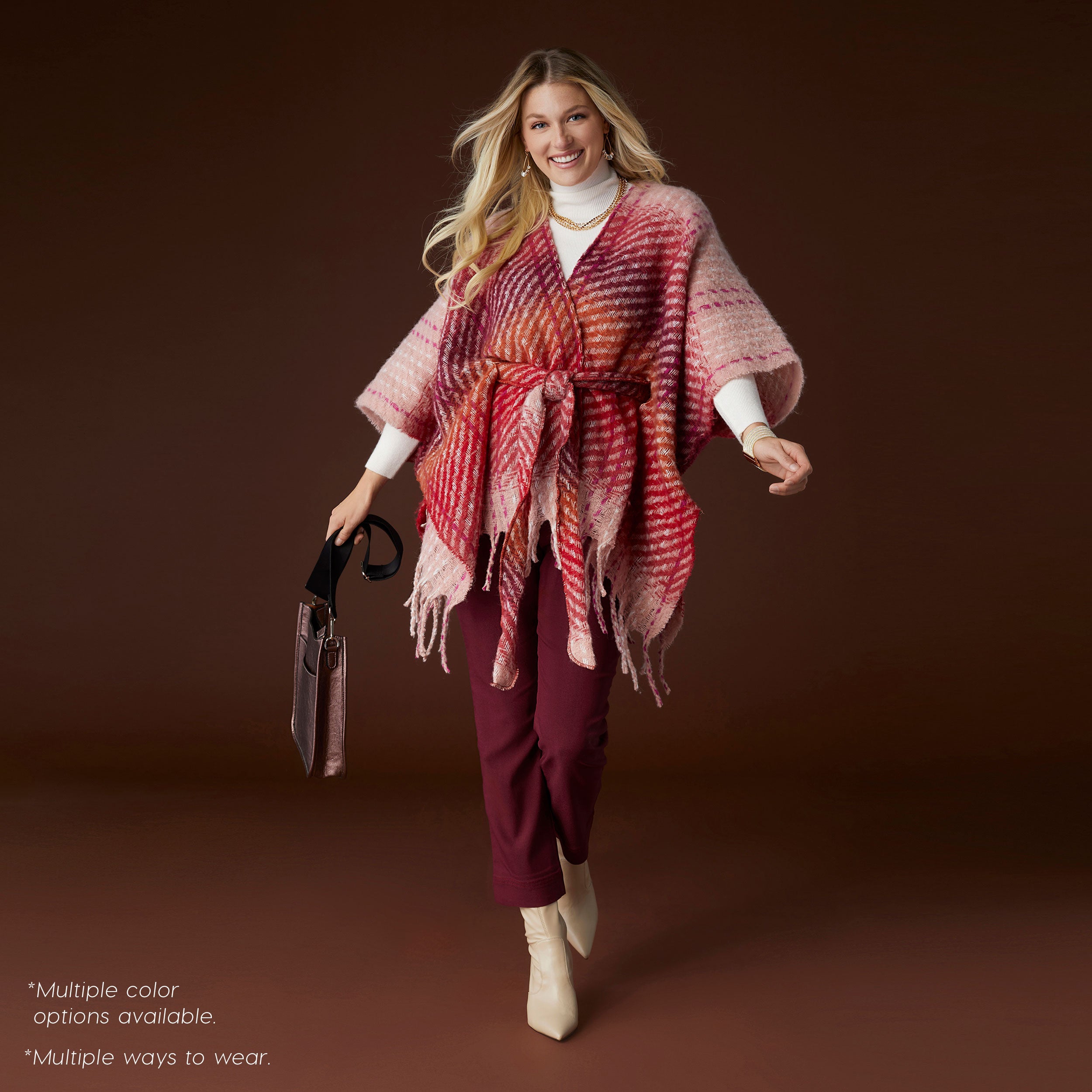 Elevate your look with the luxurious feel of our Abigail Ruana. This one-size-fits-all garment is made with supersoft fabric and features a chic tie waist detail for a flattering silhouette. Comfort and style in one!