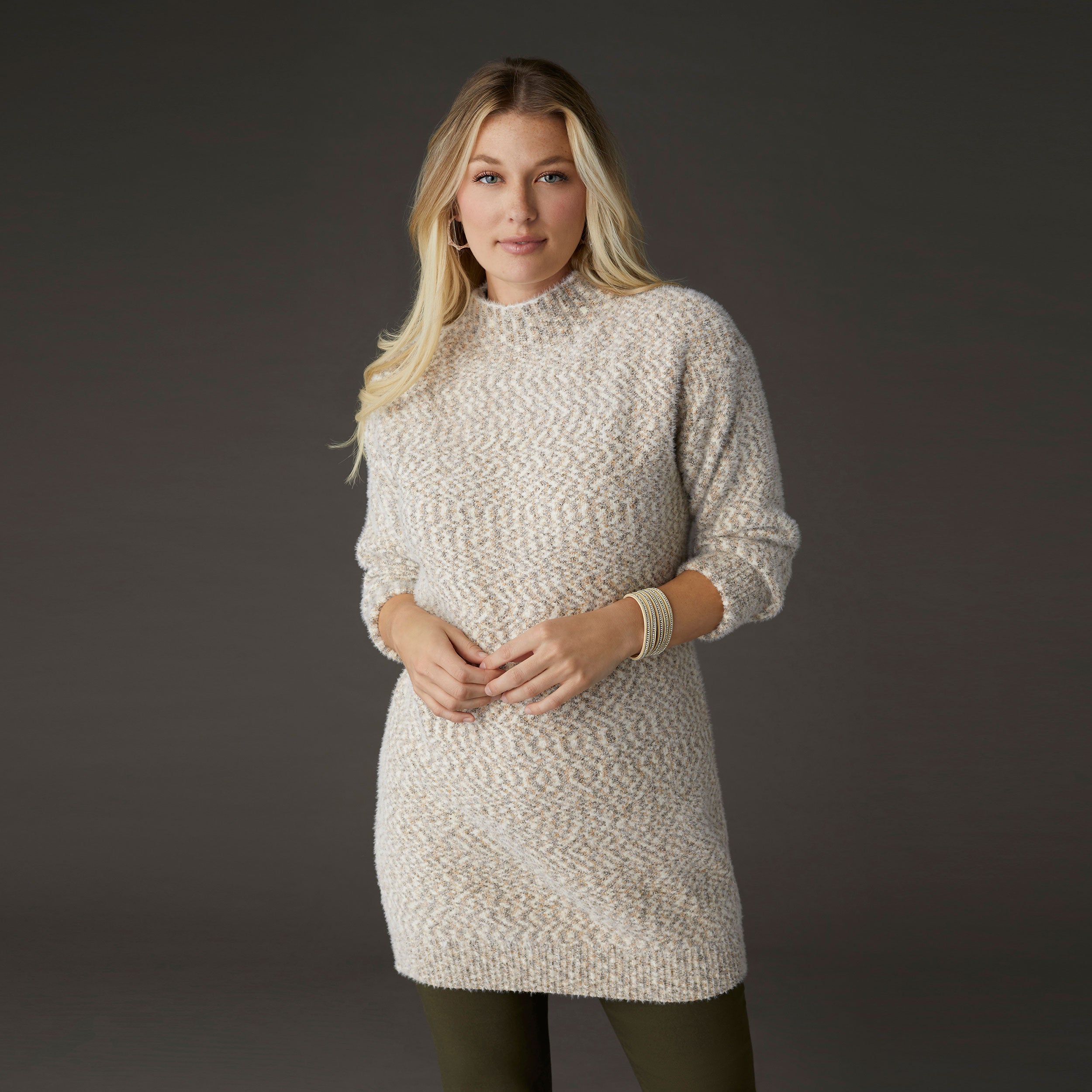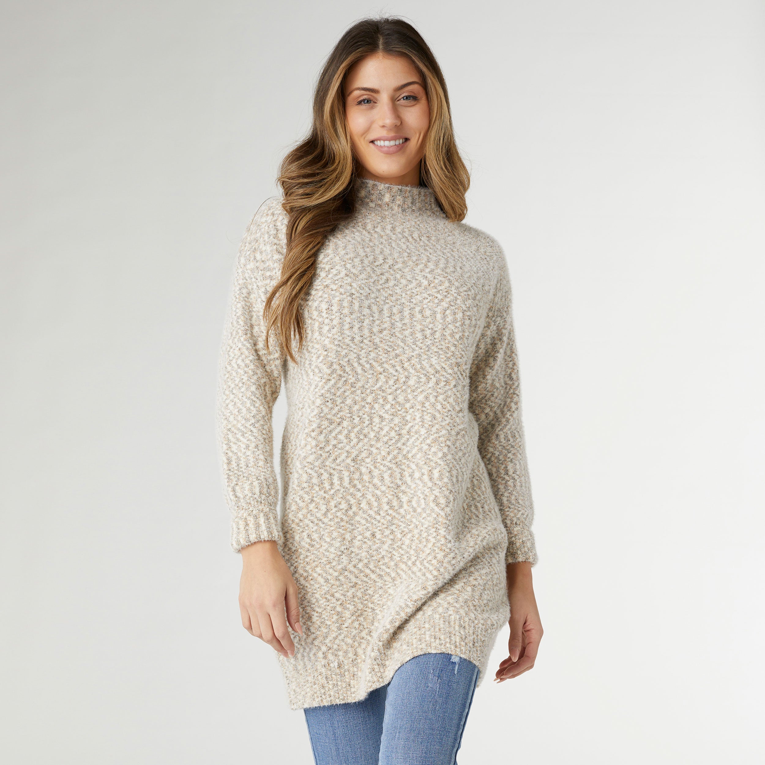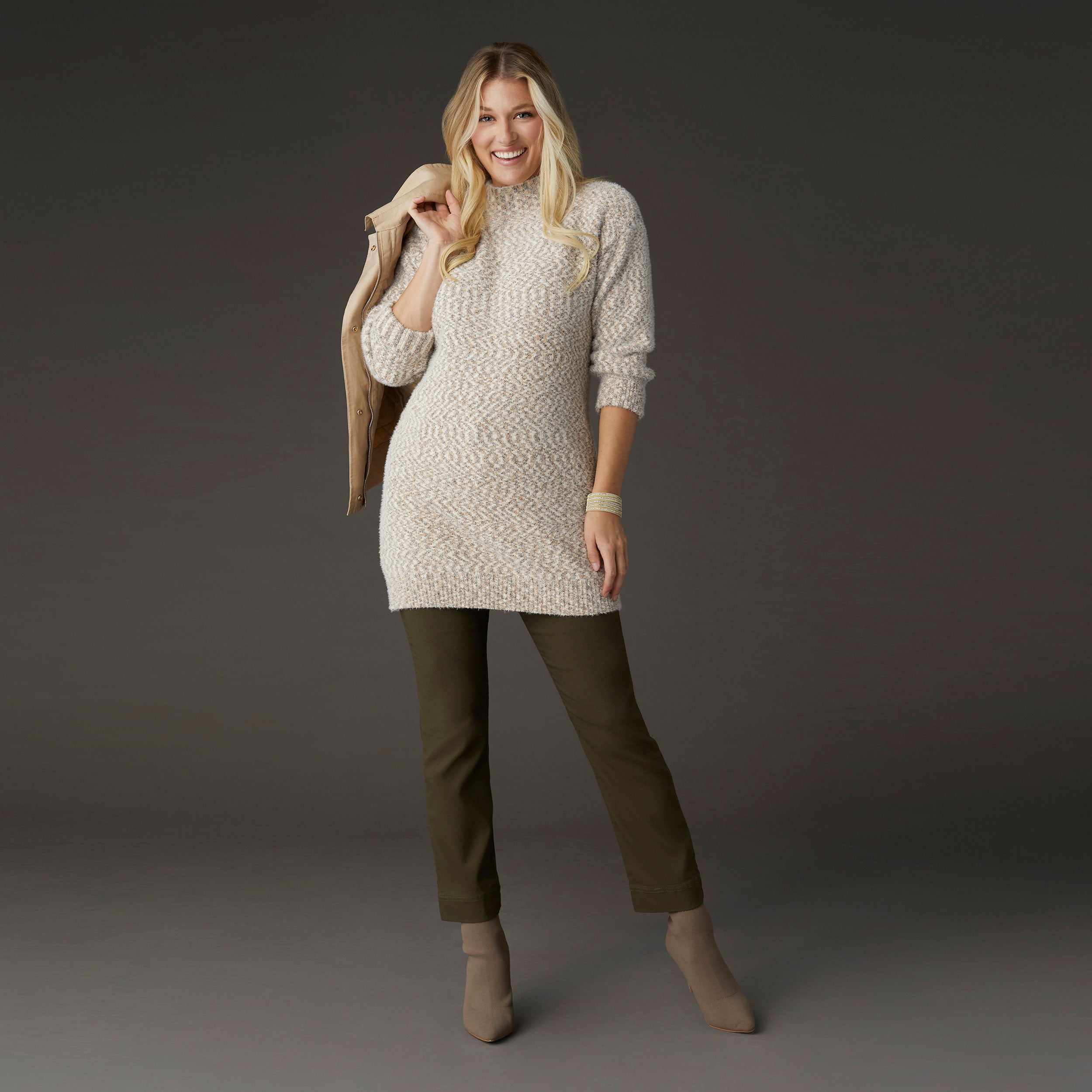 The Wicklow Sweater is your go-to for effortless style. With its flattering mock neck and cozy long sleeves, this tunic sweater will keep you warm and on-trend all season long.