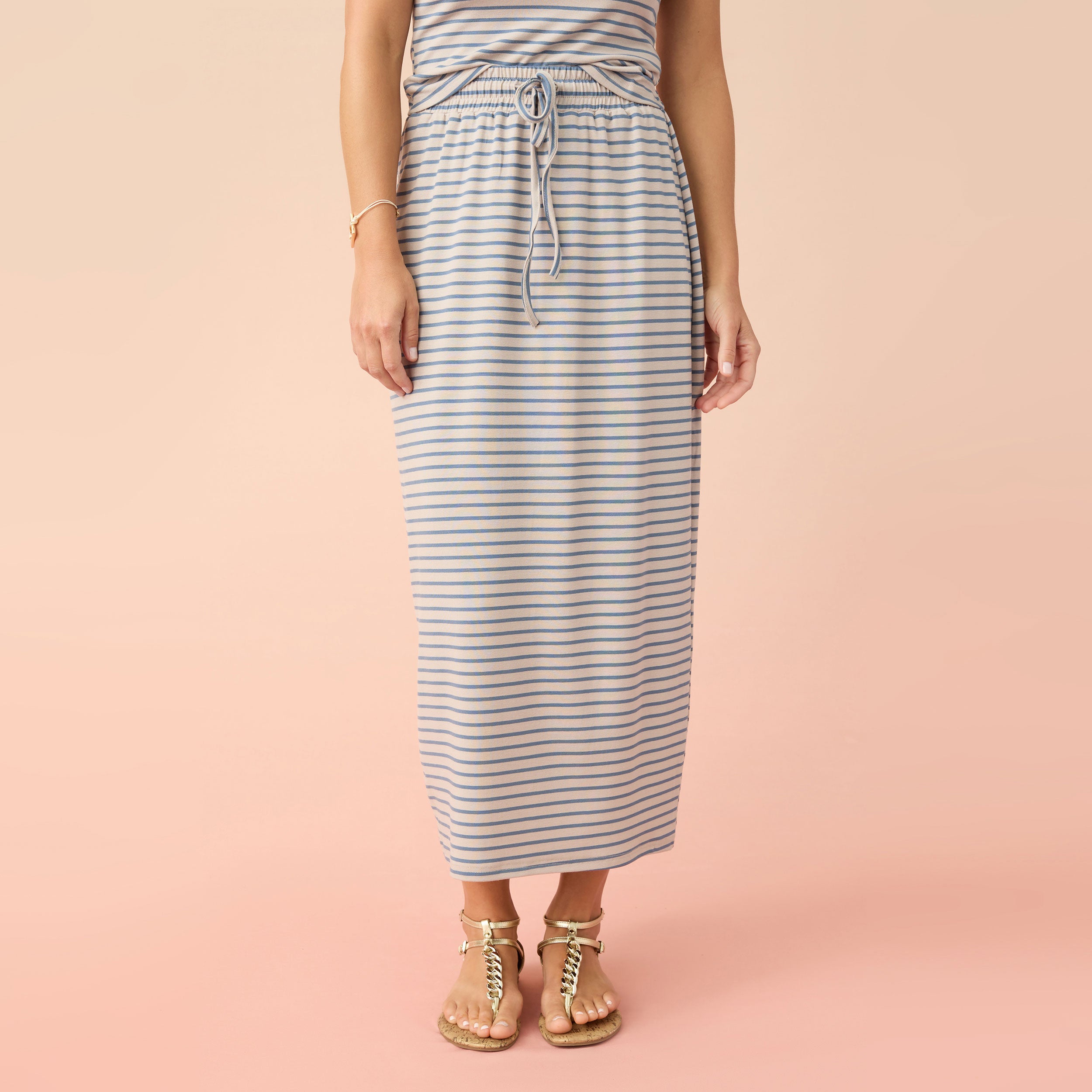 Add a touch of flair to your summer look with the Amara Striped Skirt! Featuring a trendy striped design and a cozy, relaxed fit, this skirt is the perfect combination of style and comfort. Whether you are heading to the beach or out for a casual brunch, this skirt is sure to become your new go-to piece.