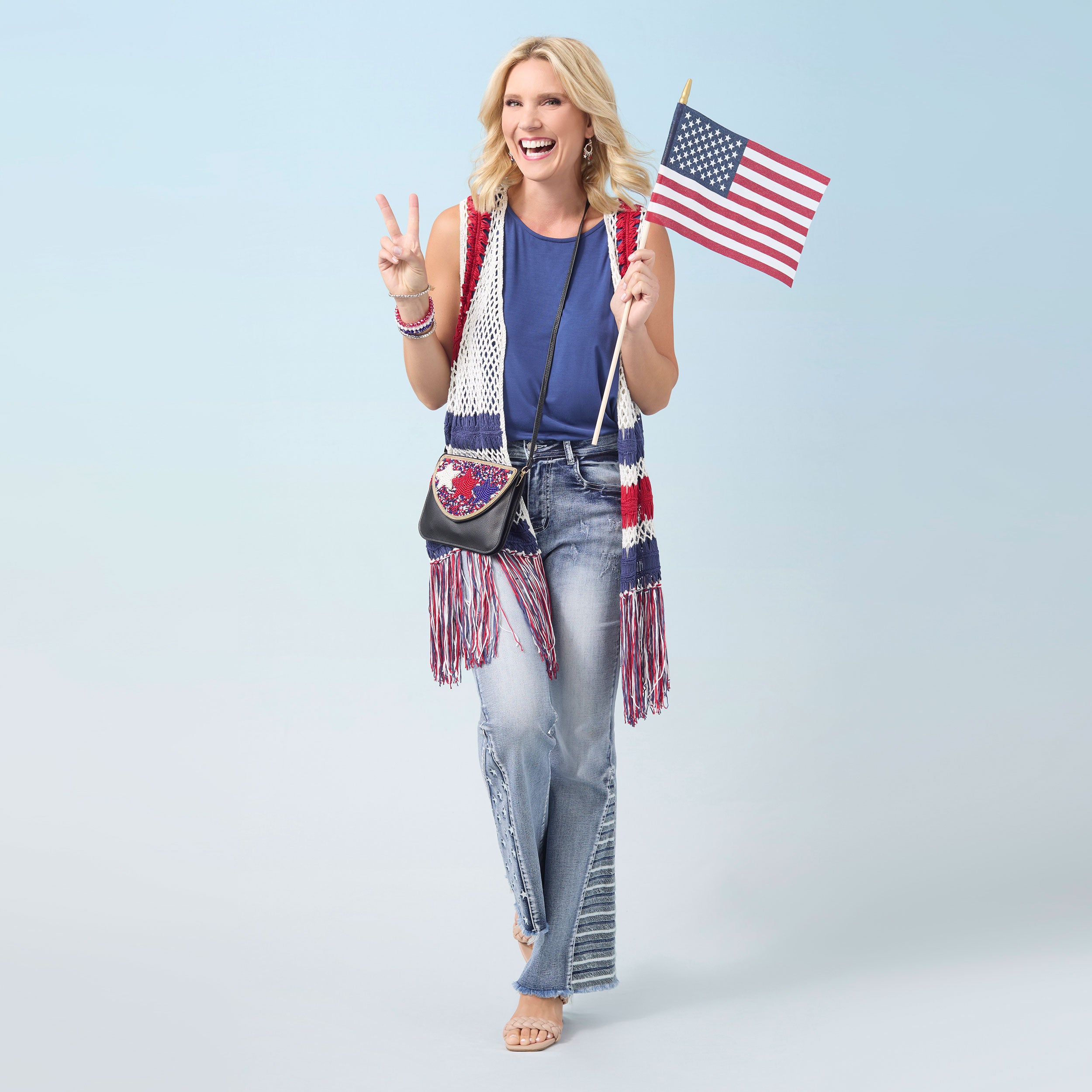 Get ready to show off your Americana style with our Victory Crochet Vest! This patriotic beauty features a stunning red, white, and blue design that is perfect for celebrating the 4th of July in style. The fringe bottom adds a touch of fun flair to this must-have piece.