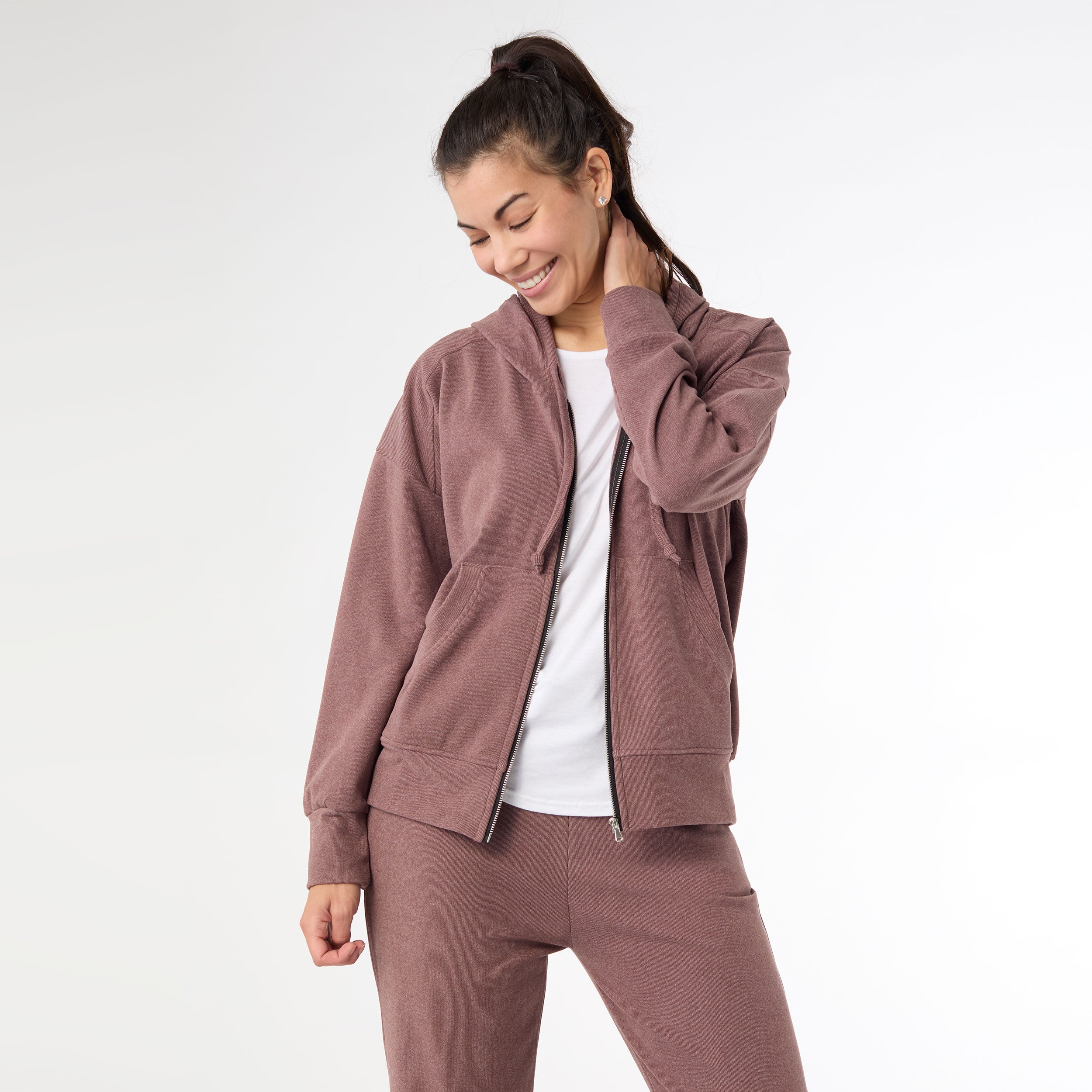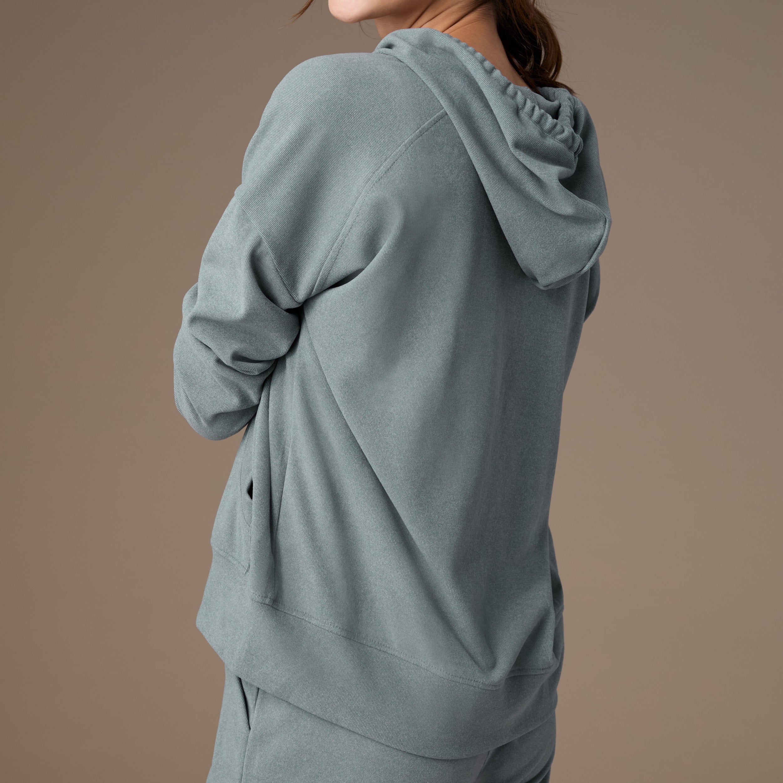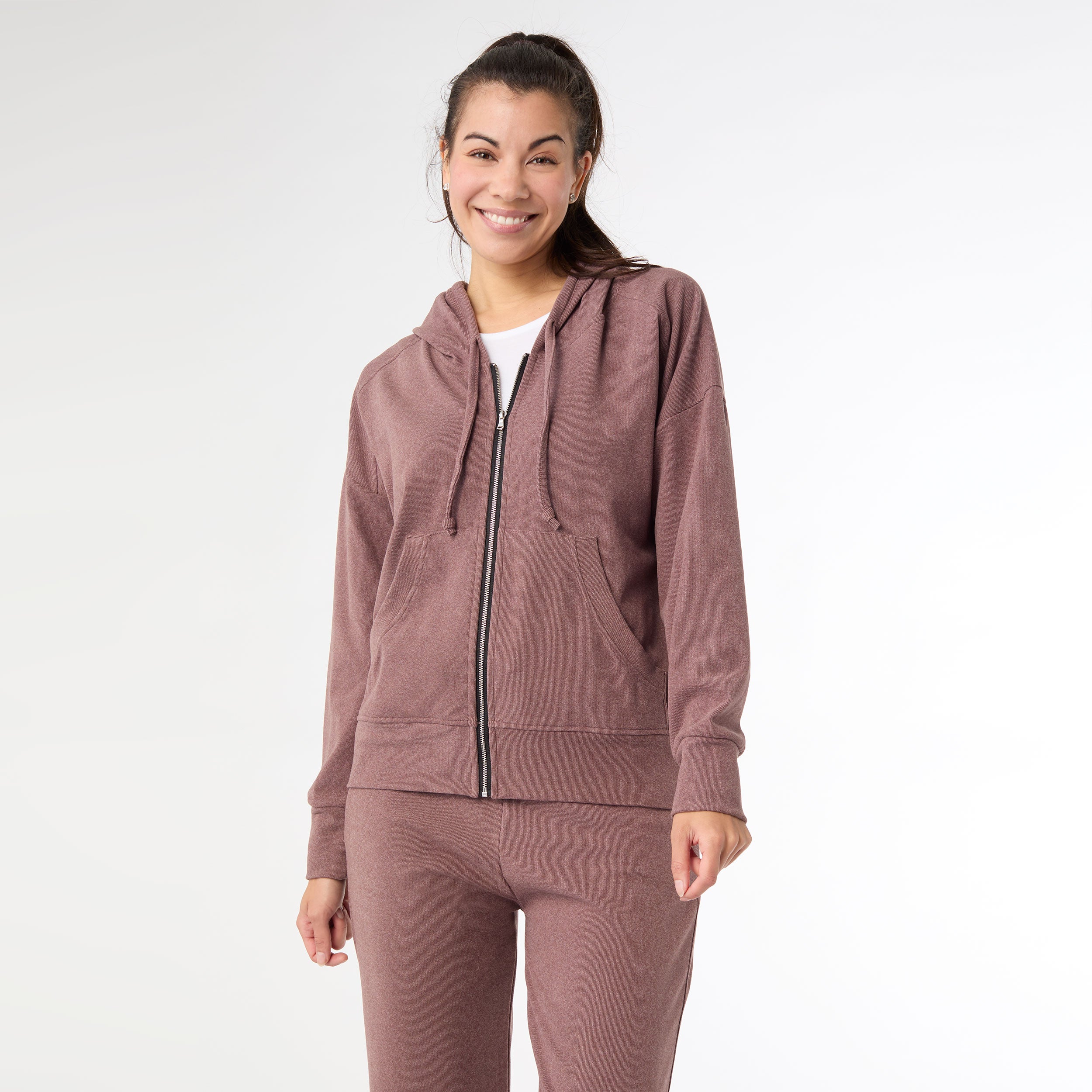 Slip into ultimate comfort with our Weekend Brushed Long Sleeve Full Zip Hoodie . Made from cozy, buttery soft fabric, this lightweight stretch top is perfect for all-day wear. It's the ideal blend of style and comfort.