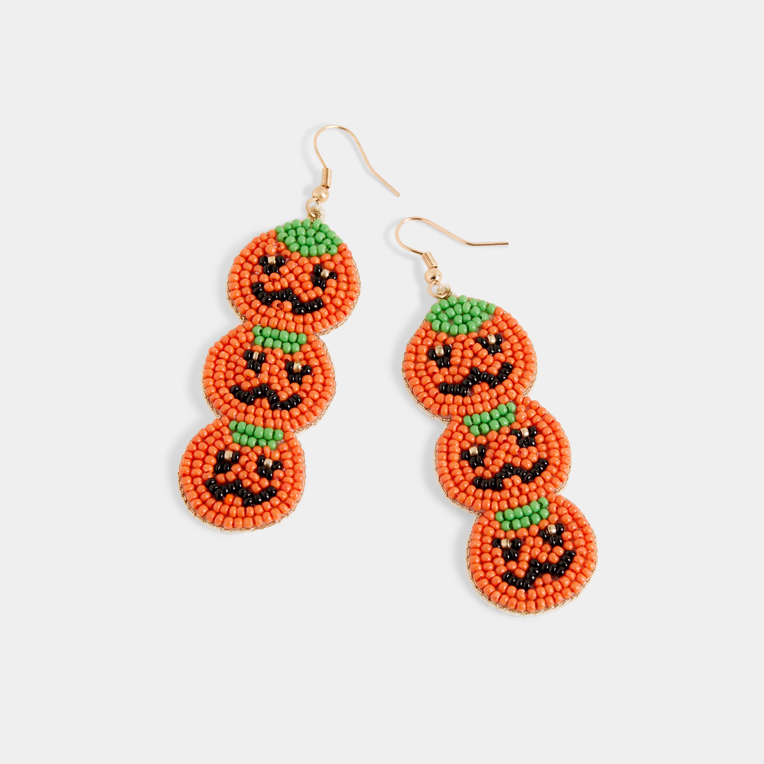 These adorable Halloween earrings are perfect for adding a touch of festive fun to any outfit! Featuring cute stacked pumpkins, these earrings are sure to make a statement at your next Halloween party.