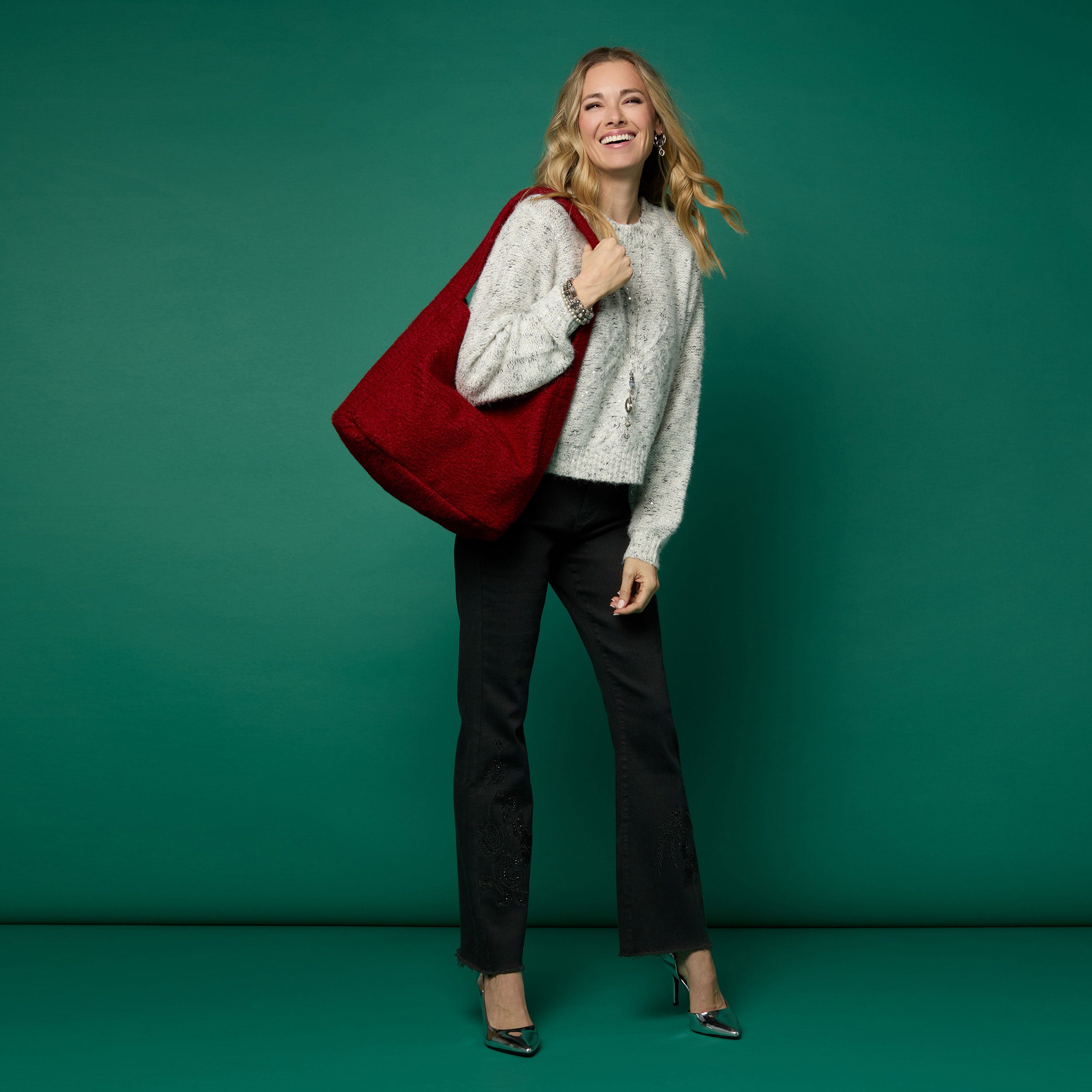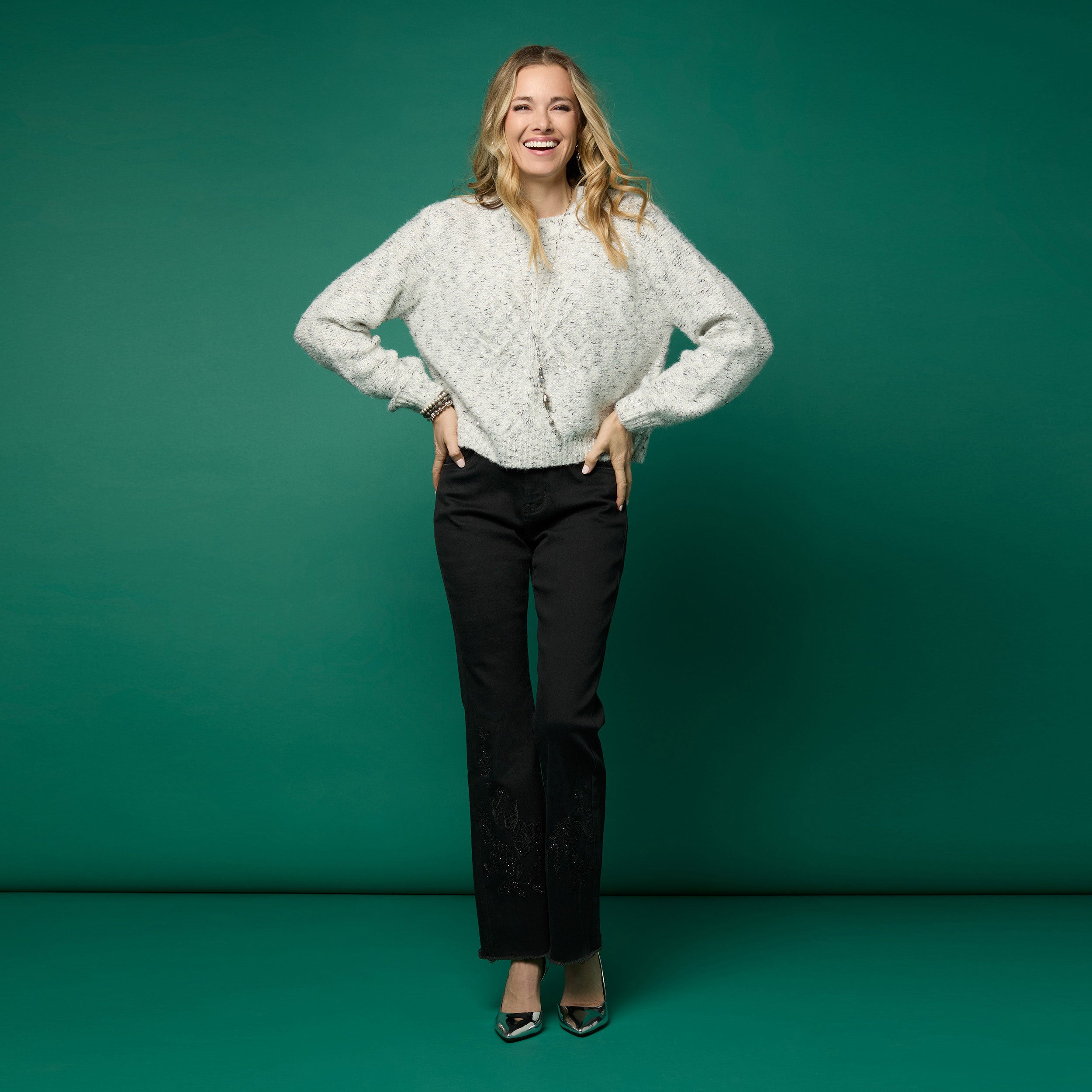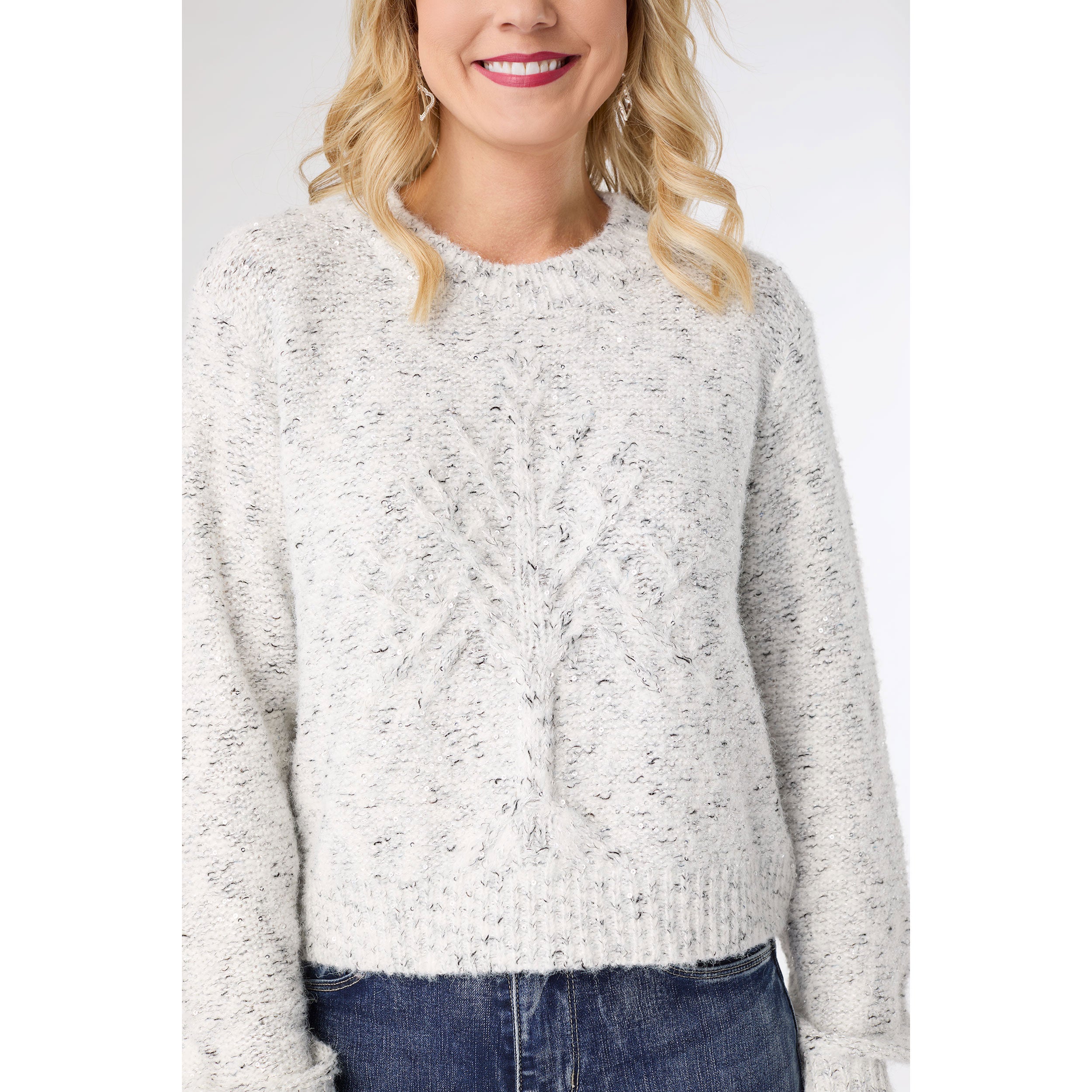 Shine bright like a Christmas tree with our Alivia Sparkle Sweater! The sparkly details and front cable knit design will have you looking festive and fabulous at all your holiday events. Stay cozy and chic with this must-have sweater.